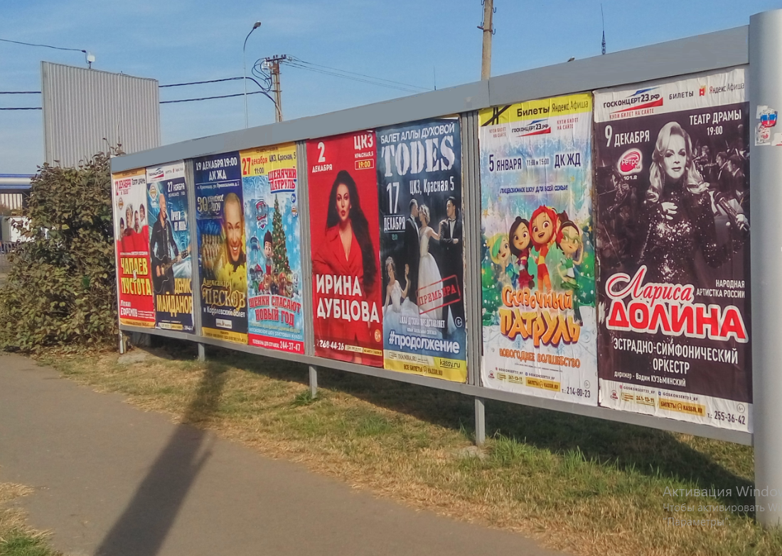 Какую рекламу размещают на афишных стендах в Краснодаре?
