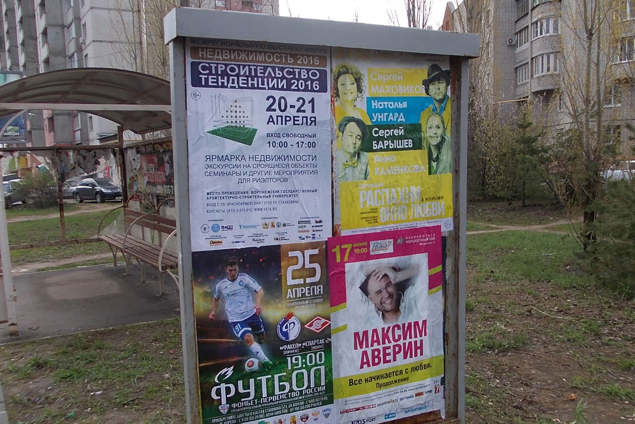 Особенно большое количество афишных стендов установлено возле остановок общественного транспорта. Все это позволяет с максимальной эффективностью доносить до целевой аудитории информацию о предстоящем мероприятии, делая рекламу более эффективной.